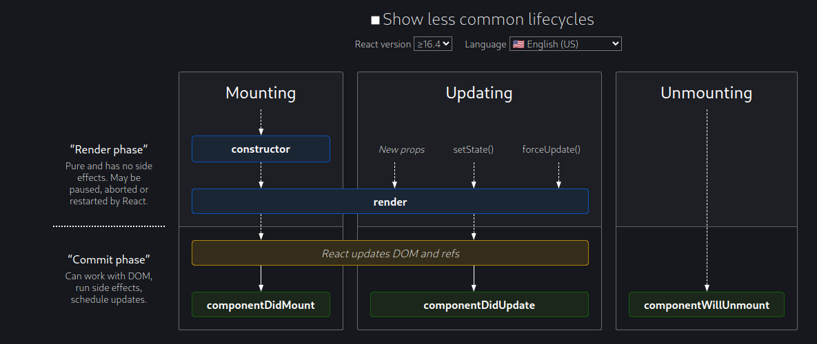 LIfecycle methods https://legacy.reactjs.org/docs/react-component.html#the-component-lifecycle